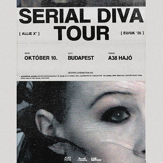 Allie X az ezerarcú pop alkimista Serial Diva elnevezésű turnéjával tér vissza az A38 Hajóra október 10-én. A koncertkörúton legújabb lemeze mellett azt ígéri, hogy diszkográfiája meghatározó albumait állítja majd középpontba, egyesítve különböző korszakainak esszenciáját a jelenben, mintha egyszerre lépnénk be minden egyes énjébe.