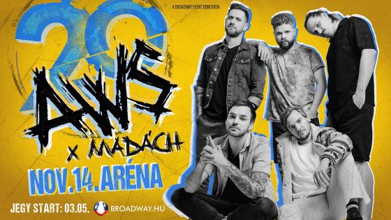 Jegyek kaphatók: https://broadway.hu/esemenyek/aws-20-x-madach-2026-11-14/