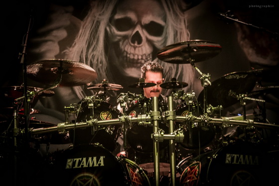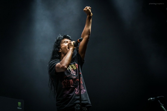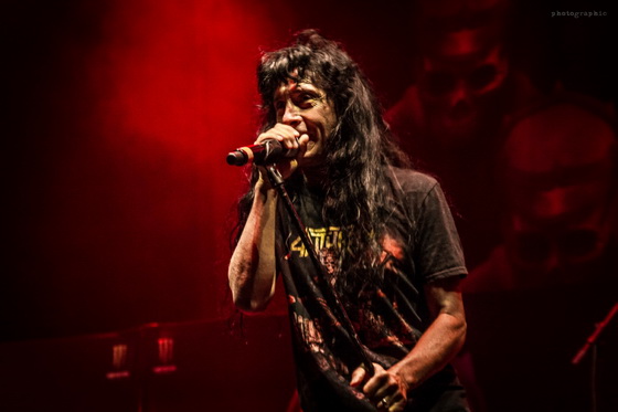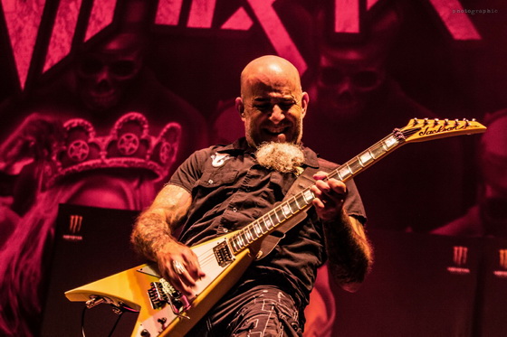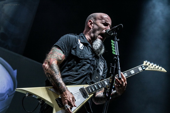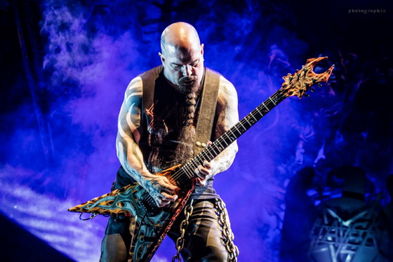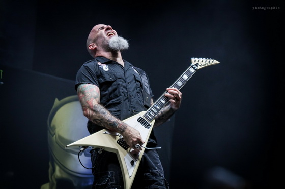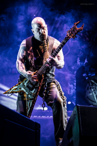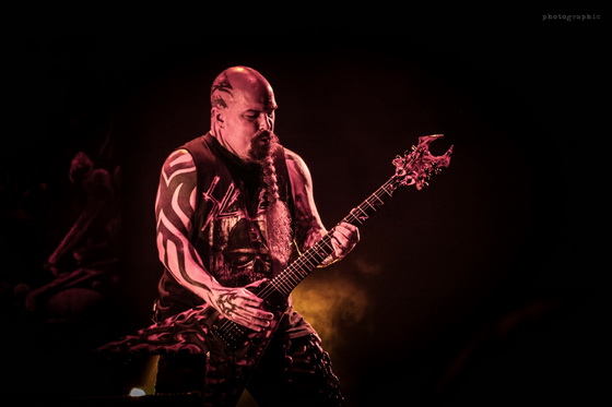 Az idei turnéra azonban már csak az Anthrax kísérte el a nagy múltú zenekart. Ám Scott Ian ritmusgitáros két előzenekar helyett is alaposan megcsinálta a hangulatot: egy óra színtiszta játék után adták át a színpadot Kerry King gitárhúrjainak. A kultikus Repentless-szel indult a koncert és másfél órán át élvezhettük a jól ismert szaggatásokat. Pár szám után az egy percre eső lábbal dobolt ütemek száma utolérte a szívem dobogását. Velem tartottak azok is, akik a 38 éve alakult zenekar diszkográfiáját ismerve nyakizomra edzve bátran bólogattak.