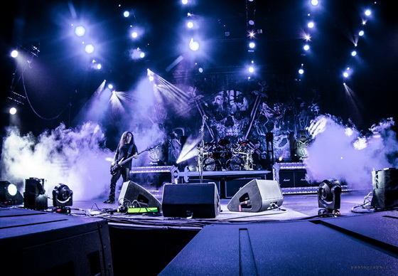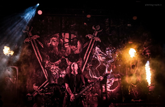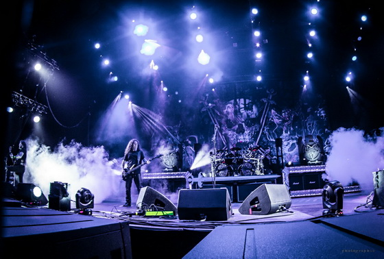 A lángnyelvek pentagram és fordított kereszt formájában melegítették a színpadhoz közel állókat és az éppen Budapesten vendégeskedő Jason Momoa színészt, aki a színpad széléről tekintette meg a koncertet. A fluoreszkáló háttér nagyon jól mutatott és vártuk, milyen háttérelemekkel égetik ki retinánkat, azonban itt csalódni kellett, mert később sem nagyon változott a színpadkép.