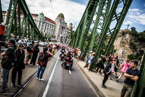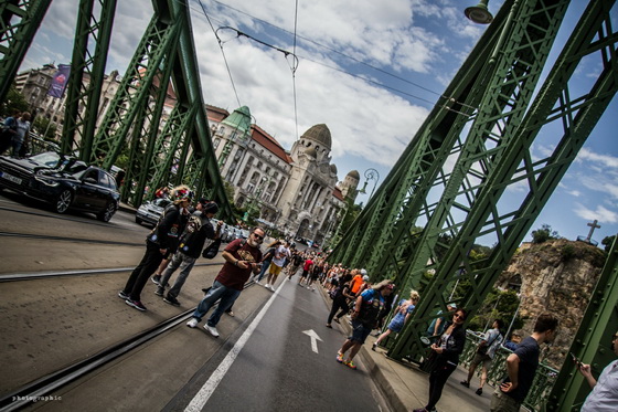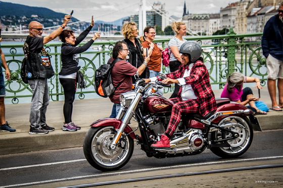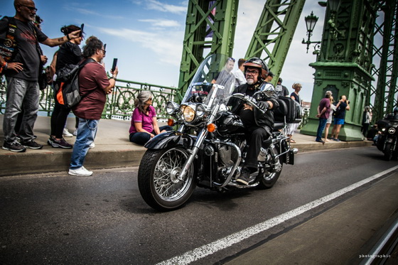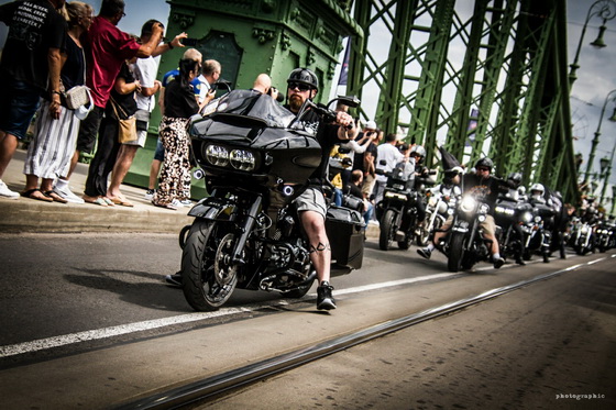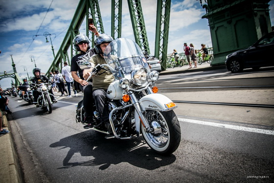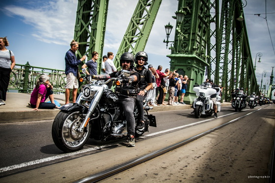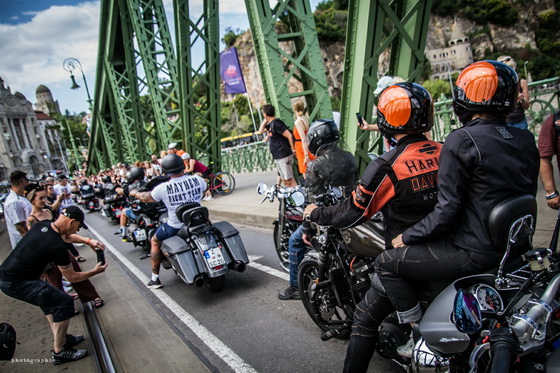 Ahogy már említettük, a hétvégén ellepték a motorosok Budapestet, a jubileumi fesztivál egyik legnagyobb eseménye pedig a szombati felvonulás volt, ahol több mint 6000 Harley robogott végig a fővároson. Mi a Szabadság hídon csíptük el a nem mindennapi látványosságot, nézzétek meg az ott készült képeinket!