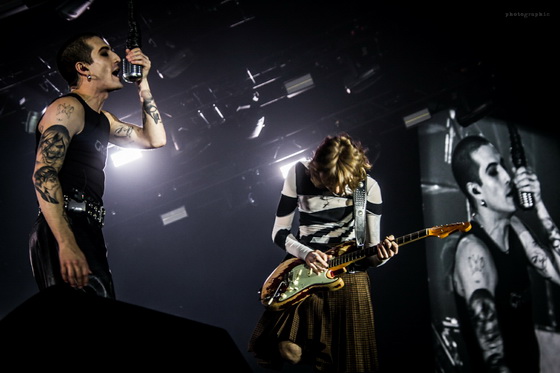 Tagadhatatlan, hogy az olasz nyelv egzotikussága lehetett a kezdetekben a hívó szó, ám a csapat nemzetközivé válása során érthető okokból egyre több angol számot készítettek, ami a koncert setlistjében is visszatükröződött. Így anyanyelvükön nagyjából a dalok ötöde szólalt csak meg (Zitti e buoni, Coraline, In nome del padre, Vent’anni, La fine), de mivel a talján dialektust inkább csodálom, mint értem, így részemről ez az arány is teljesen rendben volt. Azért a lelkes közönség még így is teli torokból üvöltötte az olasz nyelvű refréneket is, az angol számokat pedig az elejétől a végéig unisono fújták együtt az énekes Damiano Daviddel. Ő pedig szerencsére elég keveset beszélt a dalok között (sztereotípia, hogy az olaszok nem nagyon beszélnek idegen nyelveken), de azért a „Let’s get shit started!” típusú bemondások mégis csak kicsúsztak a száján.