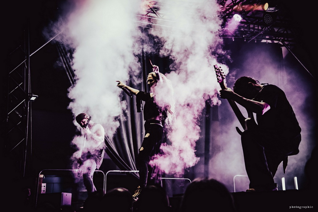A szettjük legalább annyira szólt az előadásról, mint a zenéről, a táncosok kulcsszerepet játszottak a show-ban, de Agnieška Vrubliauskienė énekesnő volt végig a középpontban, az egyik percben torokhangú üvöltéseket szabadított fel, a következőben pedig finom, szinte sebezhető énekhanggal vezényelte a show-t a színpad közepéről. Mellette volt egy óriási maszkos gitáros, egy csinos basszusgitáros lány és sok-sok smink, különféle jelmezek.