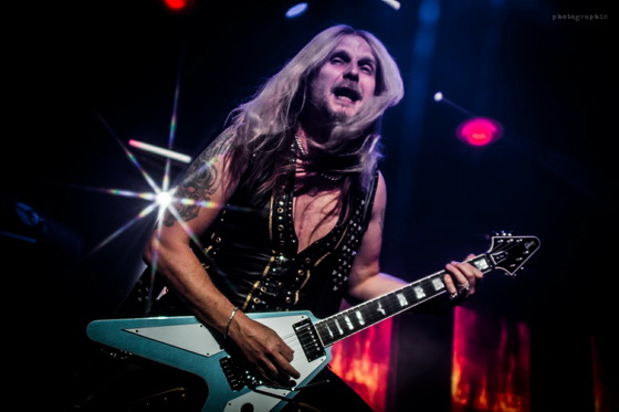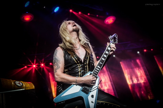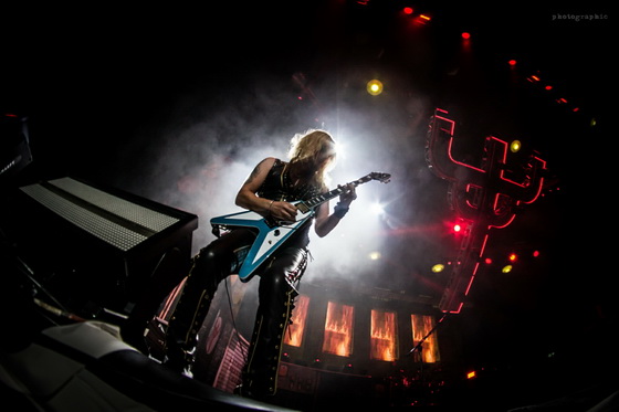 Annak is kifejezetten örültem, hogy Priest-ék meggondolták magukat és mégis a két gitáros felállás mellett döntöttek. Azért valljuk be, nehéz lenne a zenéjüket egy szál gitárral elképzelni. Richie Faulkner és Andy Sneap tökéletesen hozták azt, amit elvártak a rajongók, megtámogatva ezt, az ugyan kevésbé látványos, de annál stabilabb ritmusszekcióval, Scott Travis-szel és Ian Hill-lel.