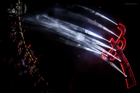 Látványban itt se volt hiány, de hangulatban se. Az intro alatt levegőbe emelkedő, majd a színpad felett lebegő, ikonikus Priest-kereszt, monumentalitásával és saját fényeivel…A színpad a Maiden csilivili díszletével szemben, egy lepukkant gyárnak lett berendezve. Zseniális volt. A „srácok” még egy hangot se játszottak, de a nagyérdemű már remegett, mint egy kisgyerek karácsony előtt. Mondjuk már az into bevezetőjének szánt War Pigs a Sabbath-tól kellően feltüzelte a népet. Az biztos, hogy ilyen lelkes embereknek játszani, minden zenész vágya.
