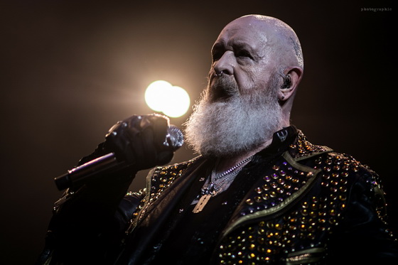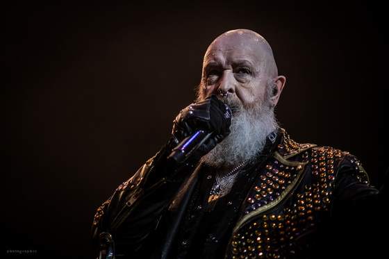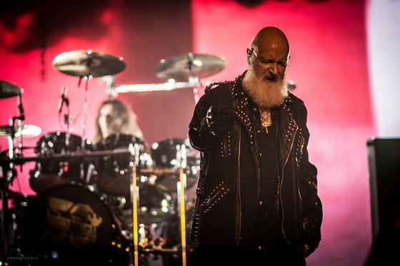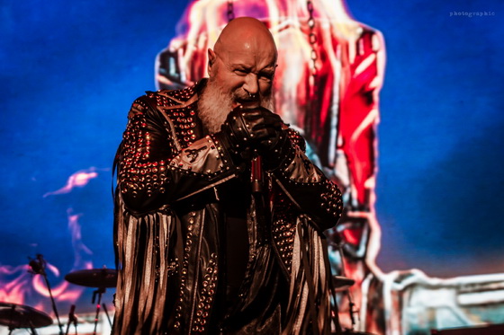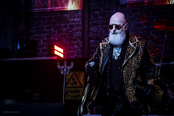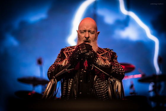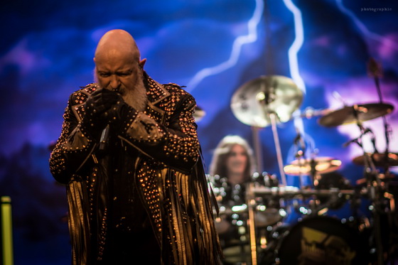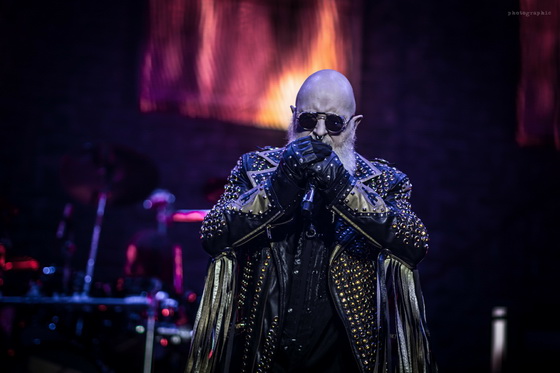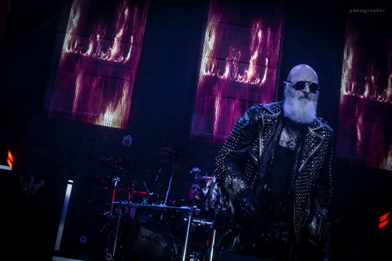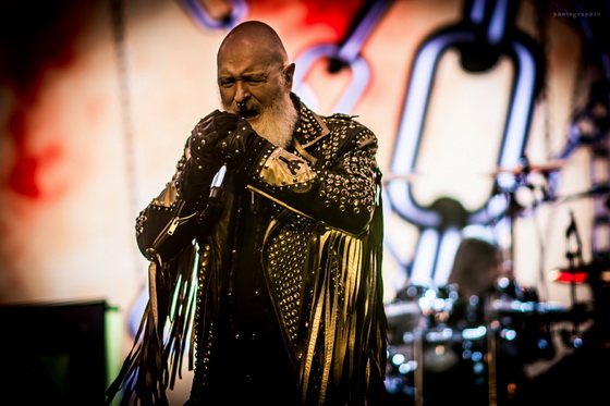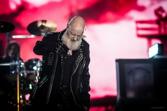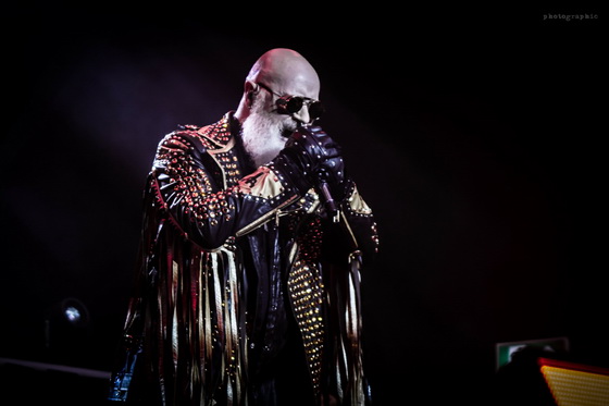 Miután minden elem a helyére került, bele is csaptak a lecsóba, és igen, a fentebb említett hangulatot és látványt sikerült megfejelni egy jó muzsikálással is. A hangzás itt se volt százas, de azt nem lehet mondani, hogy a zenészeken múlt. Az öreg Rob Halford, akiről nem tudom eldönteni, hogy minden metálos kedvenc mikulására, vagy a Meshuggah énekesére hasonlít most jobban szakállával, ha nem is erőlködés mentesen, de kiemelkedő hibák nélkül hozta, amit kellett.