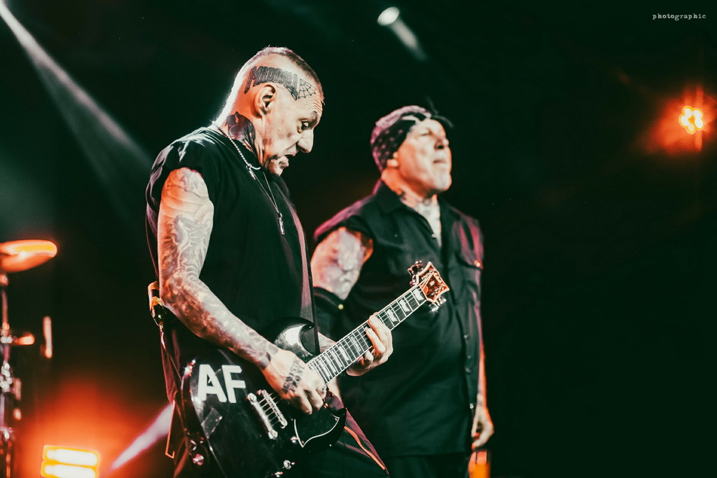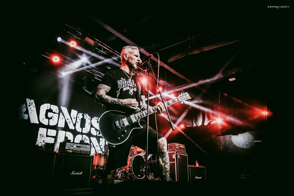 Utánuk viszont már az este főbandája, a New York hardcore alapzenekara, az Agnostic Front következett. A stílus nagy öregjei és keresztapái már visszajáró vendégek hazánkban. Csak itt a Dürer Kertben 2023-ban és 2024-ben is emlékezetes bulit adtak, nem beszélve a számtalan Rockmaratonos ás egyéb fellépésről. A Roger Miret énekes és Vinnie Stigme gitáros vezette legendás banda 1980-óta egy kisebb, öt éves szünetet leszámítva megállíthatatlanul szállítja a jobbnál jobb hardcore lemezeket és az élő fellépéseik is legendásak. Számtalan zenekarra gyakoroltak hatást.