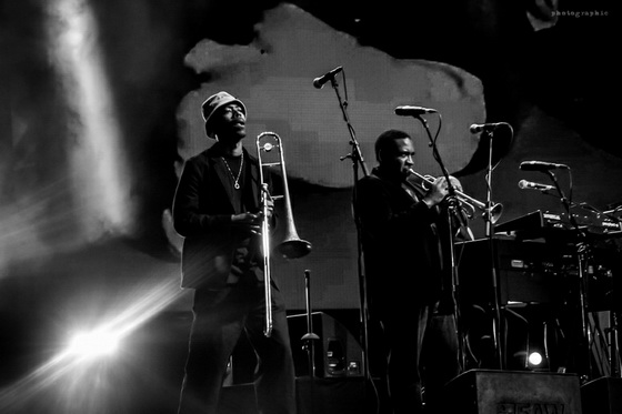 A remekül kialakított helyszínen egy hétfős brigád – két gitáros, két fúvós, egy dobos, egy billentyűs és egy basszusgitáros – kísérte őt, természetesen maximális profizmussal. Azt mondjuk sosem értettem, hogy lehet nyugiban, egy helyben állva végigjátszani ezeket a nyers őserőtől fűtött dalokat – még ha a jelenlegi hangszerelés azért indokolta is valamelyest a dolgot –, de hát még Josh Homme is szépen a háttérben tudott maradni a mester árnyékában, amikor a 2018-as CalJamen szerencsém lehetett a Post Pop Depressionhöz, úgyhogy egy szavunk nem lehet az amúgy tényleg vérprofi kísérőzenészekre.