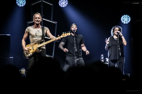Persze nem mehetünk el szó nélkül a zenekar többi tagja mellett sem, akik valamennyien hangszerük virtuózai: a gitáros Dominic Miller, a fiatal dobos, Zach Jones és a billentyűs Kevon Webster mellett a két vokalista is megcsillogtathatta tehetségét. A saját lemezeket is megjelentető és Jason Derulo, Chris Brown, Faith Evans, Usher, CeeLo Green, Jay Z, Alicia Keys, John Legend vagy Diddy számára dalokat író Gene Noble a Shape Of My Heartban kapott egy önálló betétet Juice WRLD Lucid Dreams-ének interpretálásával, míg Melissa Musique Stinggel duettezett a Whenever I Say Your Name-ben. Természetesen mindkettőjük produkciójának hatalmas ováció volt a jutalma a közönség részéről.