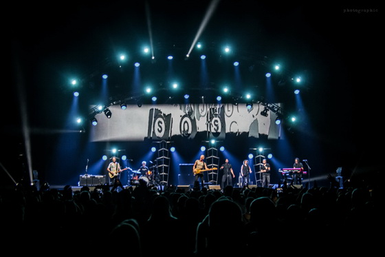 De ne szaladjunk ennyire előre, mert már a popzene fullánkjának színpadra lépése előtt is kellemes zenei élményekben lehetett része annak, aki időben érkezett a Papp László Sportaréna egyre több embert befogadó küzdő- és nézőterére. Nagyon kevés olyan koncert van, ahol célirányosan már a hangulatba hozó előadó fellépésére is kíváncsi vagyok, ám ezúttal már csak a családi kötelékek okán is vétek lett volna kihagyni a felvezetést. Természetesen Sting (hat gyermeke közül a) legidősebb fiáról, a 45 esztendős, már őszbe csavarodó halántékú gitáros-basszeros-énekes négyszeres apuka Joe Sumnerről van szó, aki iskolapéldája a „nem esett messze az alma a fájától” tételnek. Néha folkos beütésű egy szál gitáros pop-rock dalaival, minden faxnitól mentes, ám mégis szuggesztív előadásmódjával teljes értékű minikoncertet adott a lelkes közönségnek. Számomra ez az egyszemélyes produkció is abszolút meggyőző volt, és remélem, hogy mielőbb alanyi jogon, komplett zenekar élén is viszontláthatjuk egy egész estés fellépés keretében!